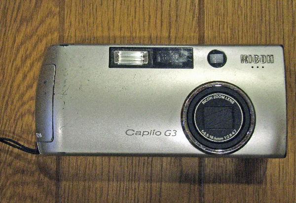現在までつかってきた 3 台めのデジカメはリコーの Caplio G3 です. これはデジカメとしてはシャッターが高速にきれるということで買ったのですが,これまでつかってきたカメラのなかでは比較的丈夫なようです. 先日も旅行中にこどもが 2 回ほどおとしましたが,電池がはずれただけで,本体はこわれませんでした.