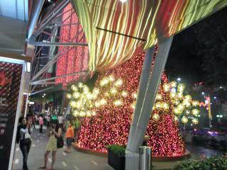 ION のビルからそとにでた. ビルの正面は潤沢に場所をさいて大胆なデザインにしている. まわりにはクリスマスにむけたさまざまな電照がある. この写真がとれないのはとても残念だ.
