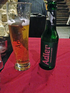 ビールはよくわからないまま注文したが,250 ml のピルスナーだった. 軽い,ふつうのビールという感じだ. 皿は 2 つだが,最初の皿の写真をとるのはわすれた. なまの野菜はすこしだけであり,日本のサラダ程度だ. あとはいわゆる前菜. メインがシチューなのでスープもないし,パスタもついていない. シチューにはいろいろなさかながはいっている. あじつけはソフトだ.
