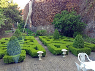 そこからみえる裏庭はよくととのえられていて,魅力的だ (右上の写真).