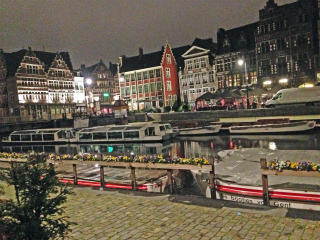 学会のためベルギーのゲントにきている. まちの中心には運河があり,船で観光できる. 学会の行事として,夕方から船にのり,観光したあとバンケット (夕食) にのぞむようになっていた. けっこうさむいなかを観光したが,さいわい,ひえきるまえにバンケットになった.