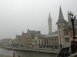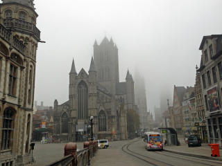 ベルギーのゲントに出張していたが,きょうは日本にかえる日だ. 荷物をもってホテルをでて,トラムの駅がある,まちの中心にむかってあるいていった. 毎日のように写真をとってきたあたりだが,きょうは霧がかかっている. これも一興だ.