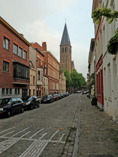 ベルギーのゲントに学会出張できた. 帰国の前日,学会がおわってから日がしずむまでの 4 時間くらいを,これまでみてこなかった,まちの中心からやや北東の部分を中心にみるのにあてようとかんがえた. ここにも教会や広場,川などがあり,ほかの地区とはちがう,比較的ゆったりしたおもむきがある.