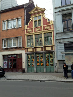 Van Eyck Brothers の彫像というのもある (左の写真). 右の写真は建物のうえの装飾が気になってとったものだ.