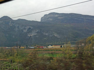 トレントからヴェローナまでは電車で 1 時間強だ. 電車は 30 分おきくらいにあるが,途中の駅に全部とまるものとそうでないのとがある. いきは 「快速」 にのったが,かえりは 8:10 の 「快速」 にのれなかったので,8:33 の各駅停車だ. いきはまっくらななかをきたが,今度はけしきがよくみえる.