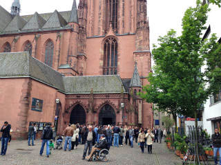 フランクフルト駅の東側に名所があつまっている. 教会を中心とする建物群,そしてひろば,橋. ホテルも駅とそこからちかいことを条件にえらんだ.