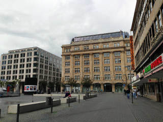ようやくあたらしいみちにでて,東にむかっていくと,またひろいひろばにでた. このひろばはあたらしいようだ. やがて,きのうからみなれた道にでる. こうしてフランクフルトの観光はおわった.