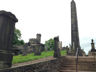 丘のうえの建物とモニュメント. このモニュメントはエディンバラのシンボルになっている.