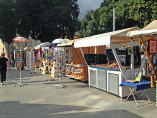 最初にはいったのが王宮だった. 現在はさまざまな店がはいっている. 周辺にも露店がならんでいる.
