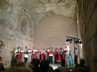 地下にあるちいさな舞台で演奏とダンスをみた. ビザンチン的な衣装を着てはいるが,ダンスはフォーク・ダンス風のものが多い. 楽器も古楽器ではない. ダンスがおわったときには 9 時くらいになっていた.
