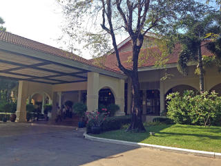 ひろい敷地に平屋の建物がならんでいる. 建物のあいだはわたりろうかでつながれている. だから,移動には時間がかかる. 左の写真は学会会場へのいりぐちだ.