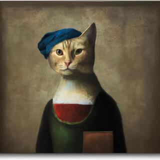 AIアートでプロンプトに cat と画家名をいれると,その画家風の肖像画の人の顔を猫におきかえたものをよく描く.人が人の絵を描く構図から猫が猫を描く絵がつくられるのがおもしろい.